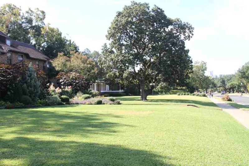 The planned residence park was designed to create beautiful sites raised from the street, with utilities and services placed in the rear, and in the front uniform setbacks were determined, allowing each home to enjoy the ribbon of green space running down both sides of the street, flanking landscaped boulevard parks. The architectural continuity of these setbacks, spacing and the height of the Swiss Avenue homes further simplify and amplify the linear flow of the street and the architecture.